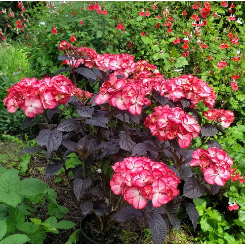Гортензия пильчатая Чоко Блэк Вельвет 'Choco Black Velvet' PBR - НОВИНКА 2026!Компактный кустарник , ценящийся за насыщенные темно-зеленые листья с сильным шоколадным, вплоть до бархатисто-красного, оттенком. Цветки, с оттенками от ярко-розового до фиолетового, появляются с лета по осень и образуют плоское кружевное соцветие.Общ... Читать полностью →