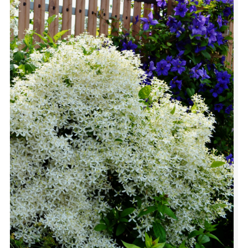 Цветет на побегах текущего года, превращая лиану в белоснежное ароматное облако.