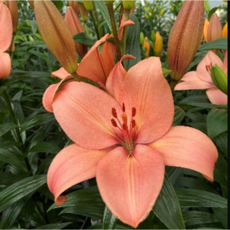 Лилия ЛА-гибрид "Coral Sunset" - это потрясающее растение с яркими, оранжево-коралловыми цветками.Раннее цветение. От посадки до цветения 75 дней. Диаметр цветка 17 см, высота 120 см. Сорт отличается неприхотливостью к выращиванию.Разбор 12/14... Читать полностью →