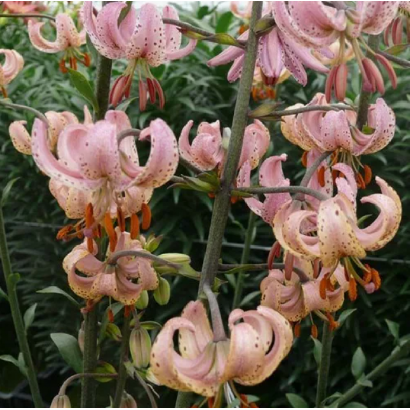 Луковица лилии Пинк Монинг (Pink Morning) - сорт из группы Мартагоны, имеет редкий для видовых лилий нежно-розовый оттенок цветка, который образован густым набрызгом розово-сиреневого крапа на основной молочный фон.Лепестки подкрученны вверх (далматская форма). Высота 110 смЗимостойкость 4 зонаРазмер: 16/18... Читать полностью →