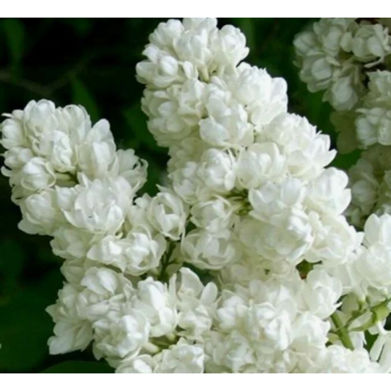 Цветки чисто-белые, крупные, диаметром до 3-х см, густомахровые (из 3-х венчиков),